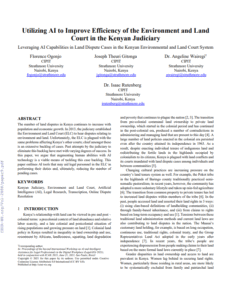 Abstract The number of land disputes in Kenya continues to increase with population and economic growth. In 2013, the judiciary established the Environment and Land Court (ELC) to hear disputes relating to environment and land. Unfortunately, the ELC is plagued…